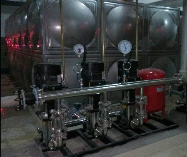 ⑤水泵连续运转供水。现代一些高层建筑,多采用吸水池贮水;用自动化装置控制水泵和保持管内水压。
