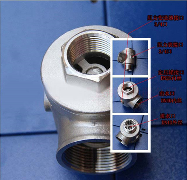 ◆选用304不锈钢材质◆止回阀选用精密硅胶阀体,防止泄压◆压力罐、压力表、压力传感器接口吻合无需变通◆进出水口径 DN25/ DN32/ DN40 /DN50